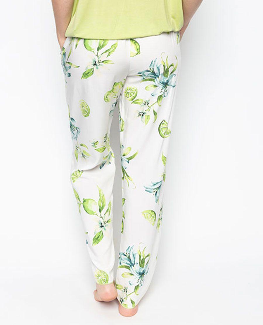 Made from 60% cotton, 40% modal, the set is trimmed with lime modal. The trousers have two side pockets and flattering ankle splits.