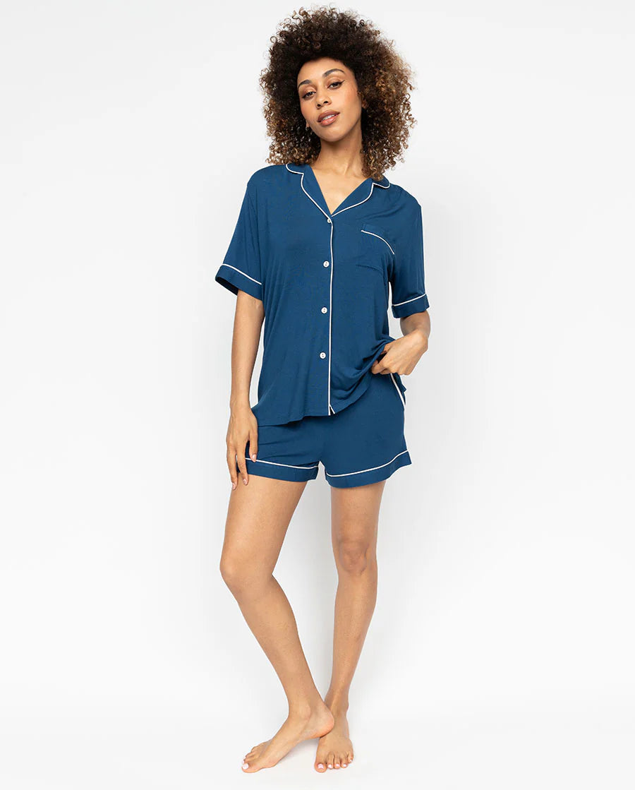 Harriet Teal Blue Knit Shorty PJ Set 0817